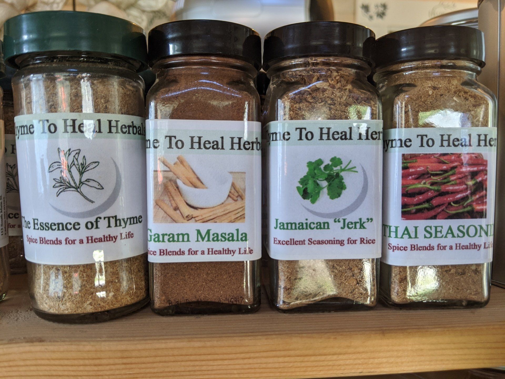 Herbal remedies are sold in the Thyme to Heal Herbals Shoppe on premise, open six days a week. Melanie maintains an inventory of over 250 herbs. Many products created here are stocked in the shoppe. Custom tea creations are made on spot and capsules can be custom ordered. All formulas are created and packaged at Thyme to Heal. All herbs are freshly dried. The shop also hosts a large collection of bath and body products. Several customer favorites are featured below. Please call ahead if you are looking for a specific product.